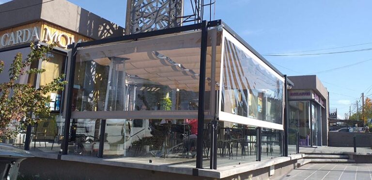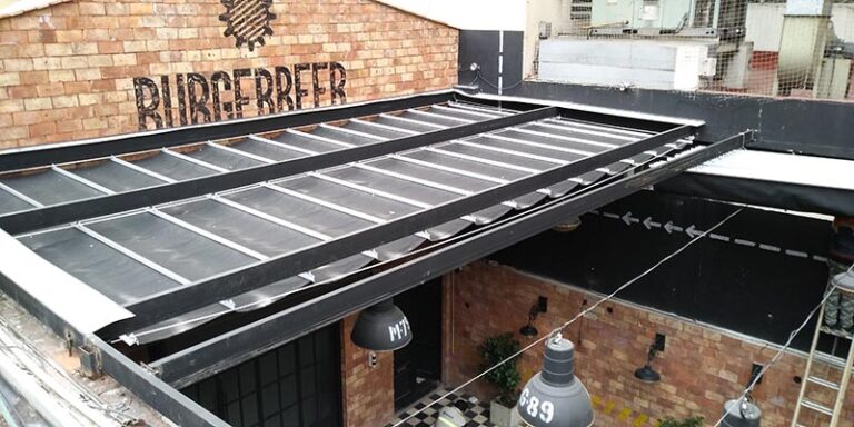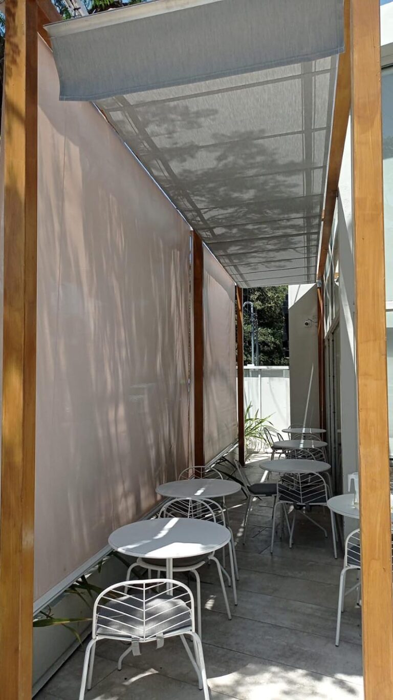 TRABAJOS REALIZADOS GALERÍA VER TODOS Romanos Brazo Invisible Vertical Fijo y Punto Fijo Auto Tensables Velas & Puff Línea Restó Cerramientos